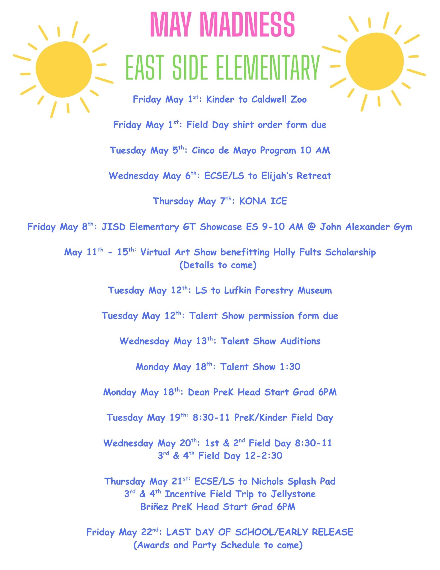 Field Day shirts are now available to purchase!NO ORDER WILL BE ACCEPTED AFTER MAY 1ST!
